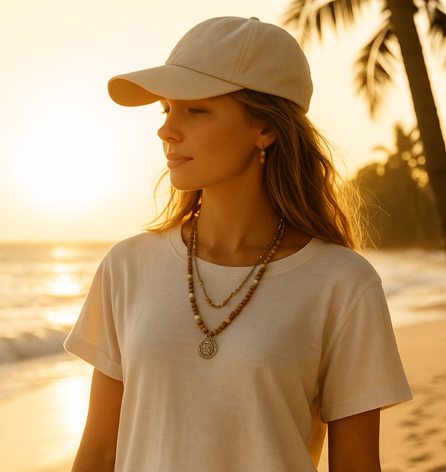 From sun-kissed caps to earthy tote bags — express your vibe, not the trend.