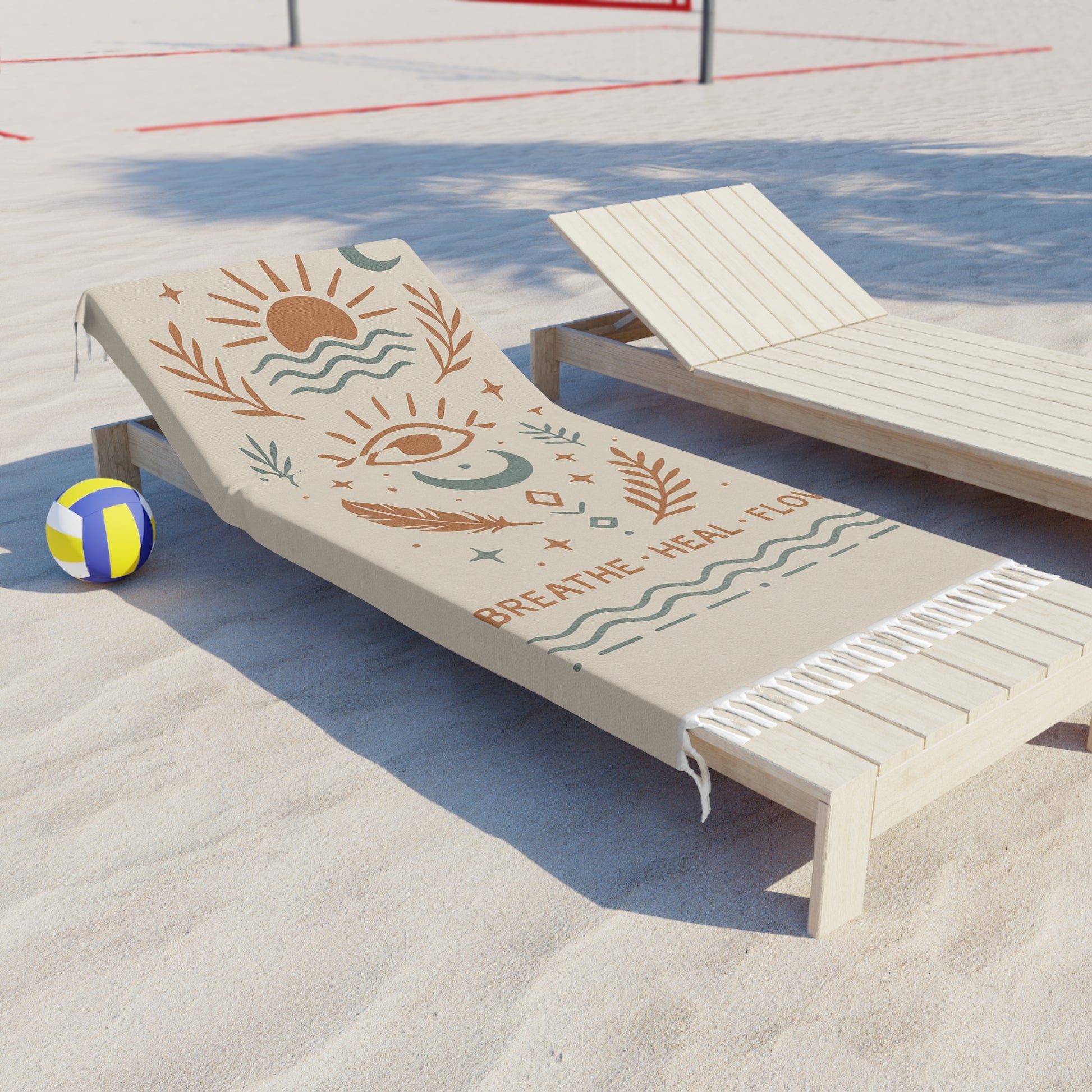 Boho Beach Towel - "Breathe, Heal, Flow" Design